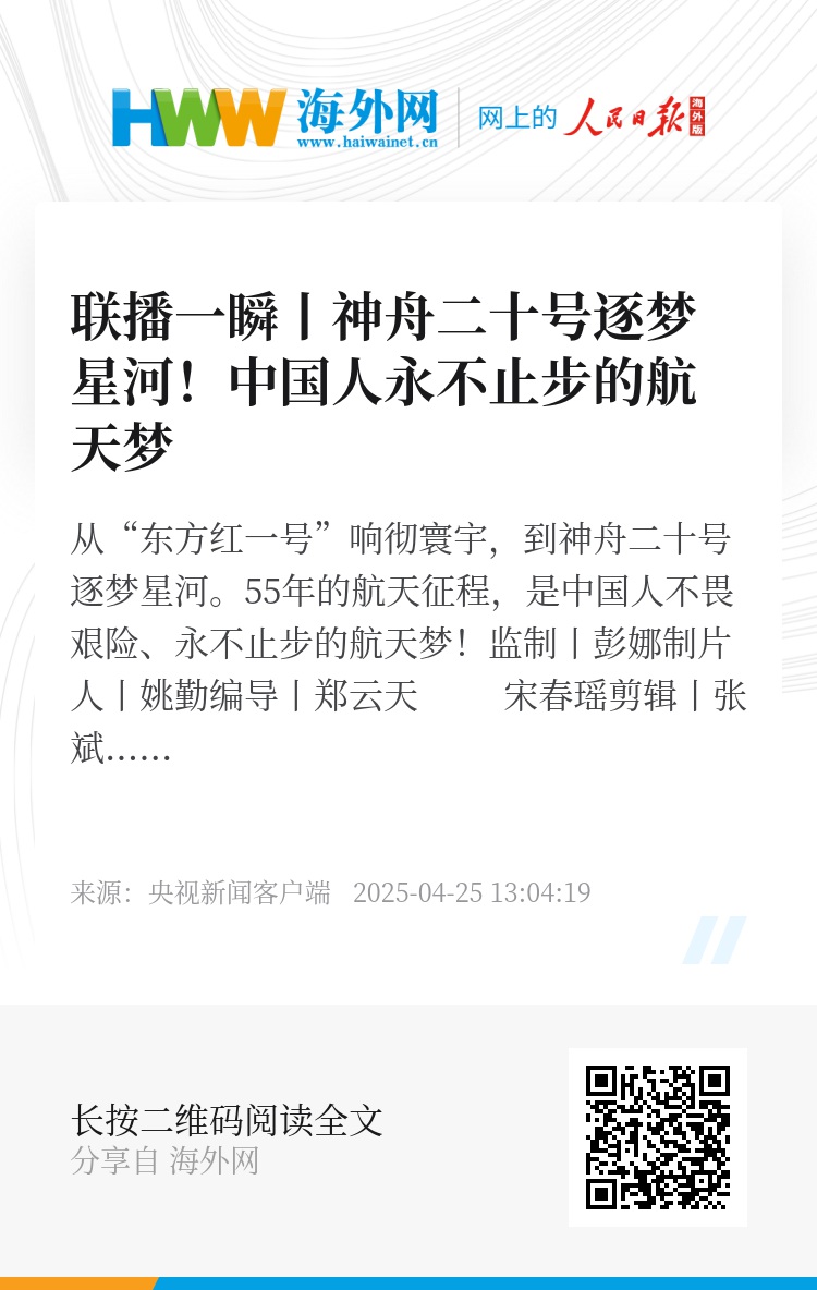 联播一瞬丨神舟二十号逐梦星河!中国人永不止步的航天梦