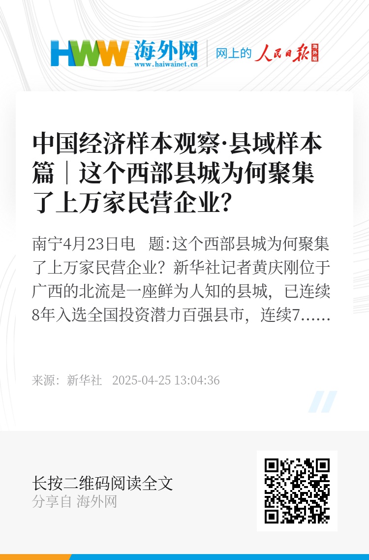 新华社南宁4月23日电 题:这个西部县城为何聚集了上万家民营企业?