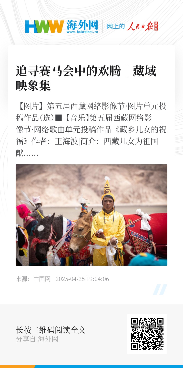 赛马会是西藏源远流长的传统活动。会上除了赛马,还有跑步、拔河、搬沙袋、歌舞、锅庄等丰富多彩的活动——这里既是速度与激情的竞技场,也是民族文化和高原风情交汇的盛宴。让我们一起通过“扎西德勒”第五届西藏网络影像节的投稿作品,解锁赛马会的独特魅力!