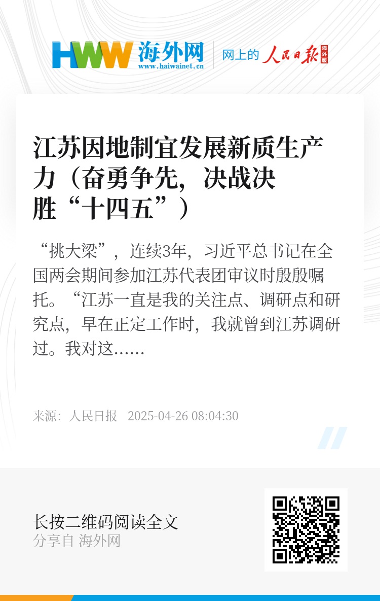 2024年全国两会期间,习近平总书记参加江苏代表团审议时,强调“因地制宜发展新质生产力”“使江苏成为发展新质生产力的重要阵地”。