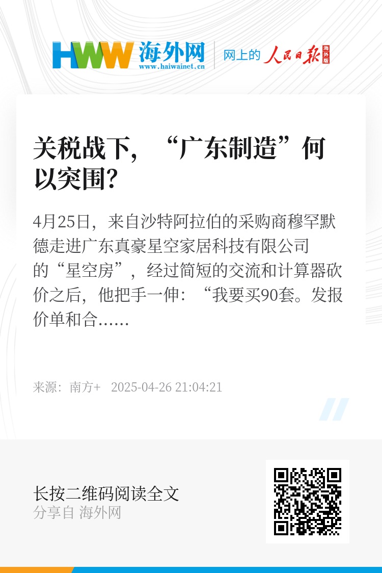 关税战给美国市场带来不确定性,但深谙市场竞争之道的粤企,早已在多元化市场提前布局。