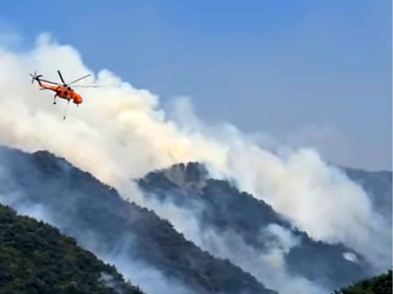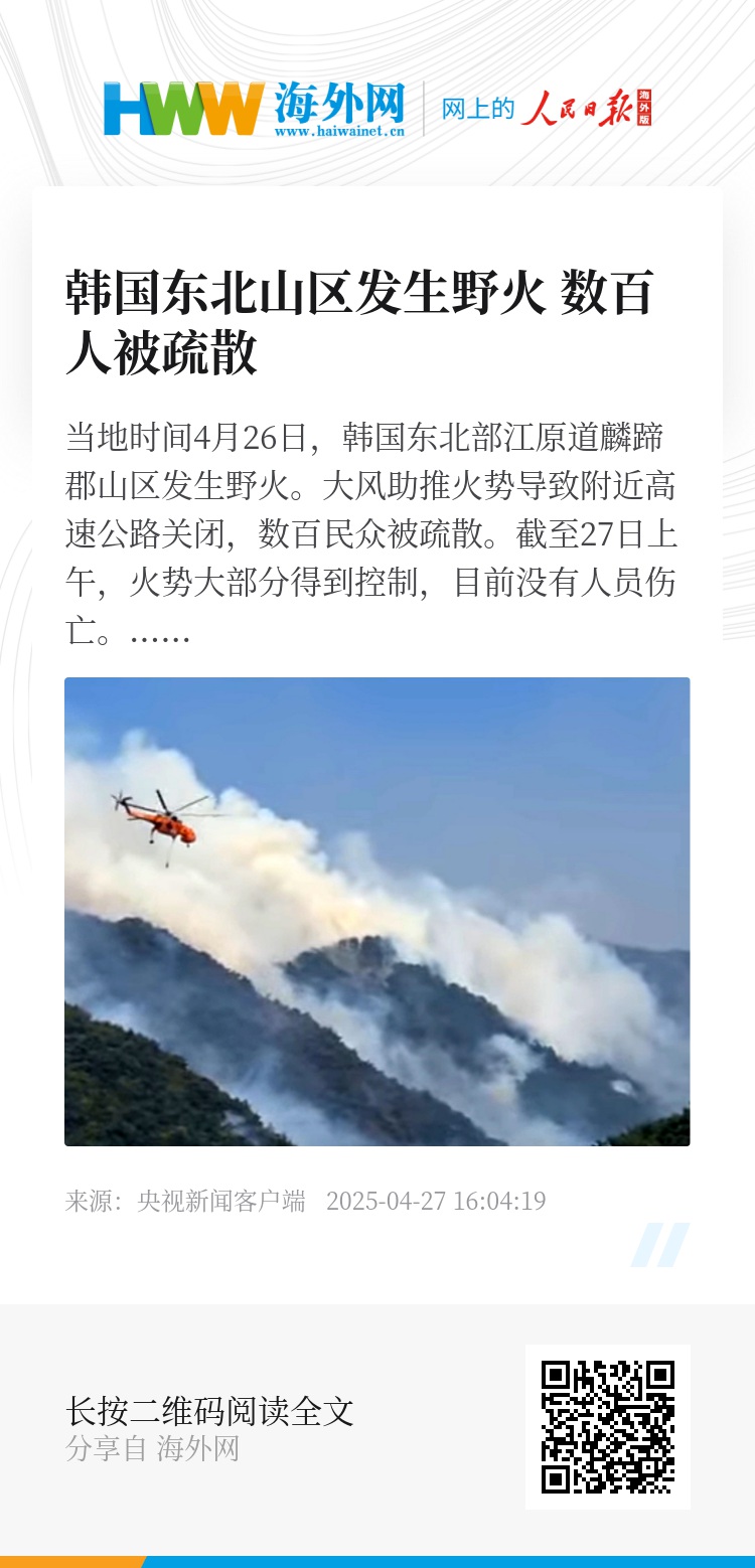 《韩国先驱报》报道,消防部门派出数百人以及19架直升机、34辆消防车参与灭火。