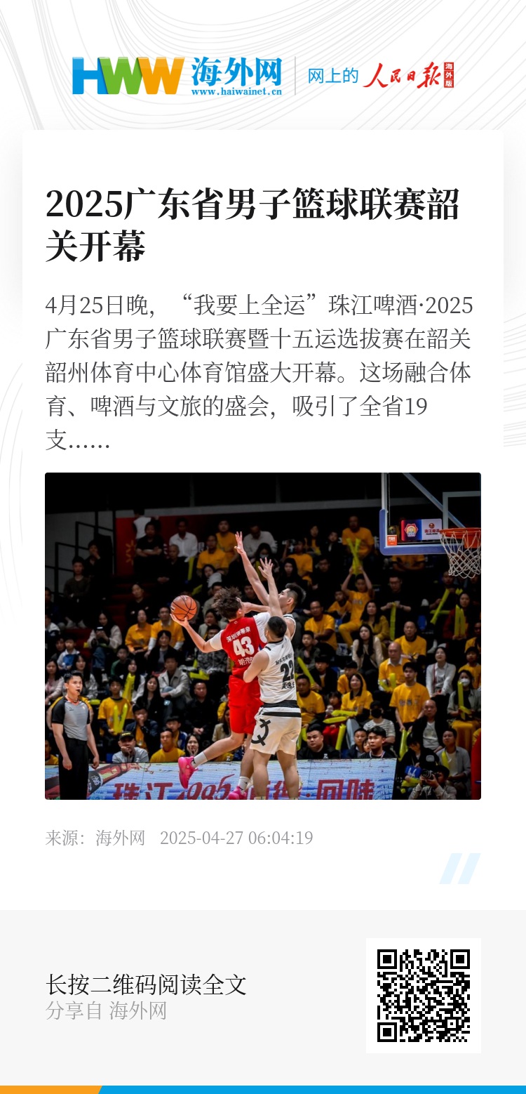 4月25日晚,“我要上全运”珠江啤酒·2025广东省男子篮球联赛暨十五运选拔赛在韶关韶州体育中心体育馆盛大开幕。这场融合体育、啤酒与文旅的盛会,吸引了全省19支队伍、304名运动员参与,赛程将持续至8月9日。
