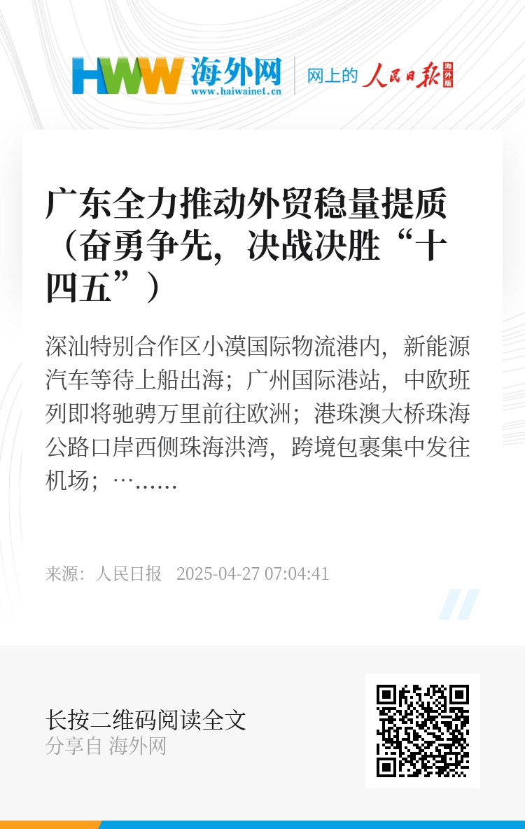 目前,广东3小时可通达东南亚主要城市,455条国际货运航线覆盖全球主要国家和港口。今年,广东将继续优化海运空运航线,推动空铁水公高效互联,同时培育一批本土供应链企业、港口物流企业、国际分销商和代理商,以高质量贸易通道建设支撑外贸稳量提质。