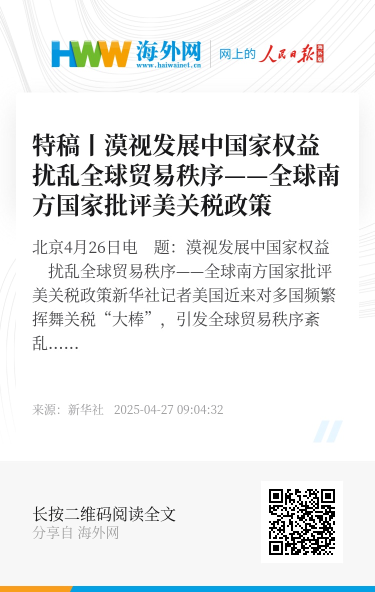 新华社北京4月26日电 题:漠视发展中国家权益 扰乱全球贸易秩序——全球南方国家批评美关税政策