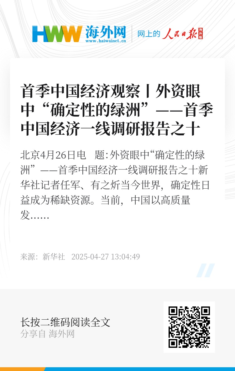 在多位外资人士看来,中国市场的确定性归根结底来自扎实的经济基本面和稳定的政策框架,中国将继续成为世界经济增长的稳定锚和重要引擎。