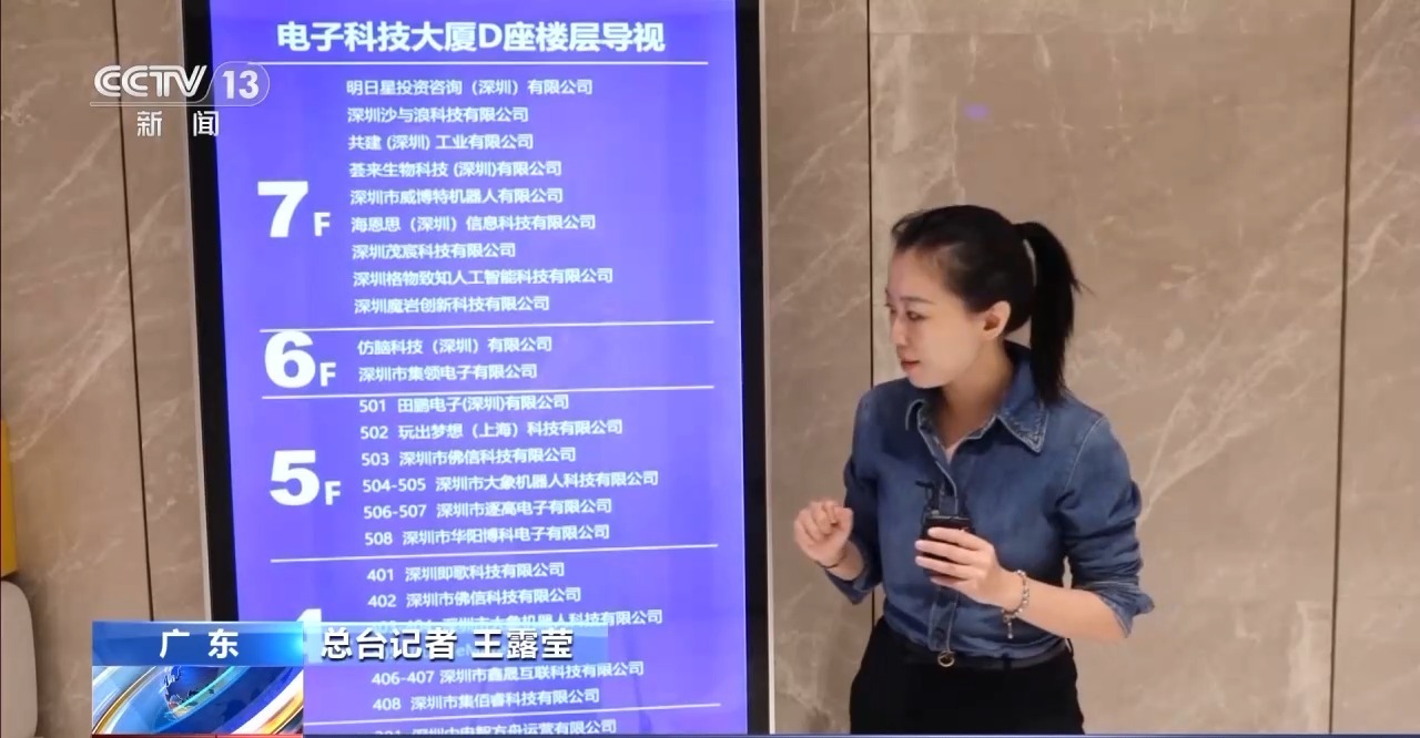 总台记者 王露莹:这栋大楼里的3至7层都是一些高科技类的企业,人工智能类的,还有机器人类的,大概是有20多家。