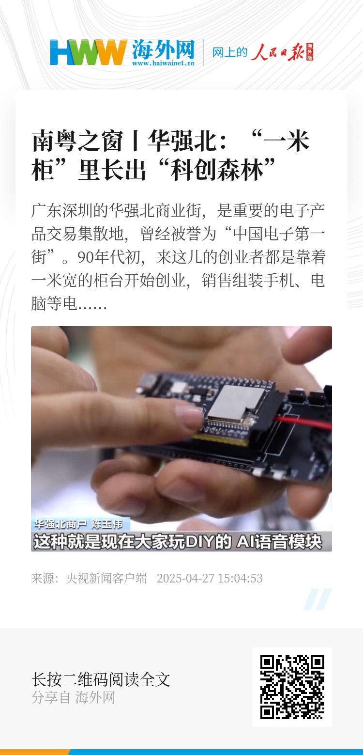 面对“中国制造”出海成本走高的严峻形势,今天的华强北,正用开源设计、智能制造重构产业链,让大湾区外贸的"最小单元"也能扛住最严苛的贸易风浪。