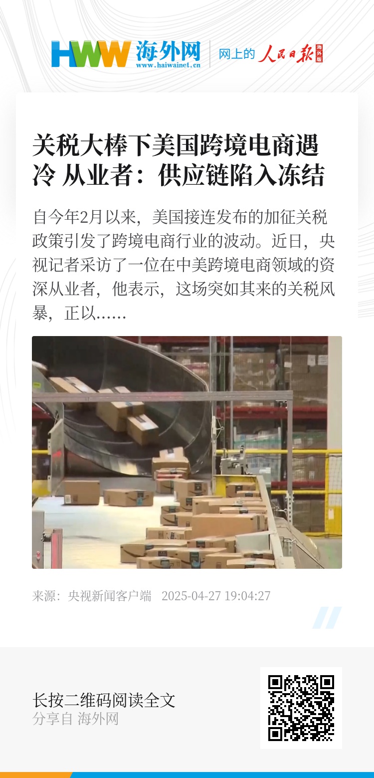 近日,央视记者采访了一位在中美跨境电商领域的资深从业者,他表示,这场突如其来的关税风暴,正以前所未有的速度冲击着无数电商企业和消费者。