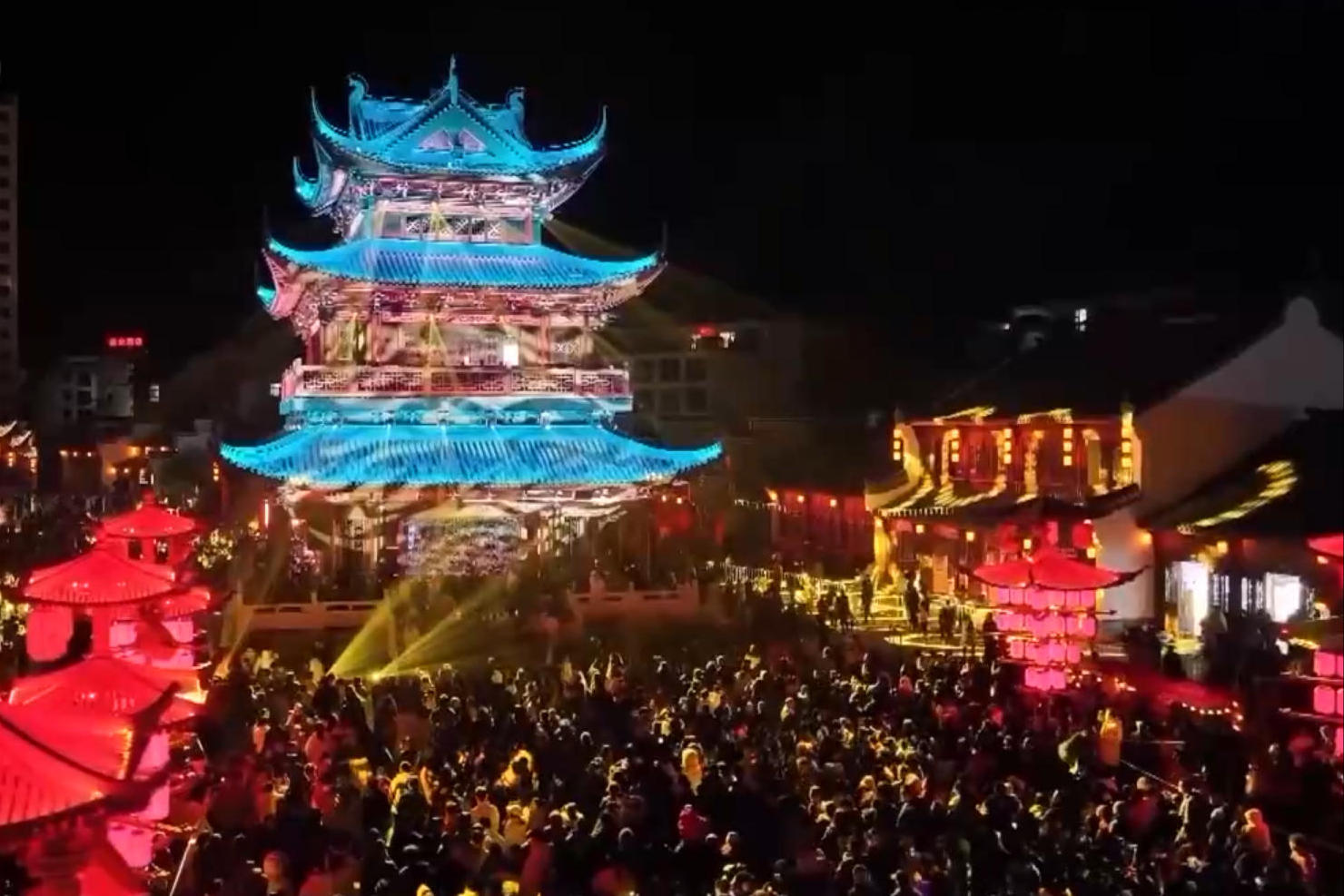 在甘肃陇南武都区的万象街区,这里灯火璀璨、热闹非凡。万象街区位于陇南市武都区南部,是一条全长将近1000米,占地65000多平方米的文化街区。从25日开始,万象街区就推出了情景演绎、古风表演、乐队演出等众多活动,为游客带来了视听盛宴,也成为这个五一假期当地文旅消费新场景。