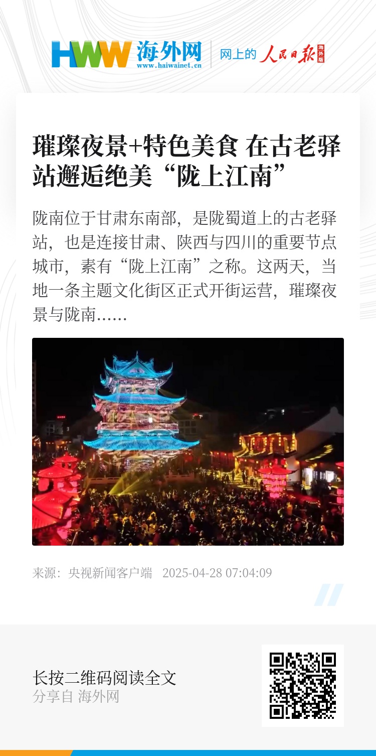 陇南位于甘肃东南部,是陇蜀道上的古老驿站,也是连接甘肃、陕西与四川的重要节点城市,素有“陇上江南”之称。这两天,当地一条主题文化街区正式开街运营,璀璨夜景与陇南文化在这里浪漫邂逅,吸引了不少游客前来打卡消费。