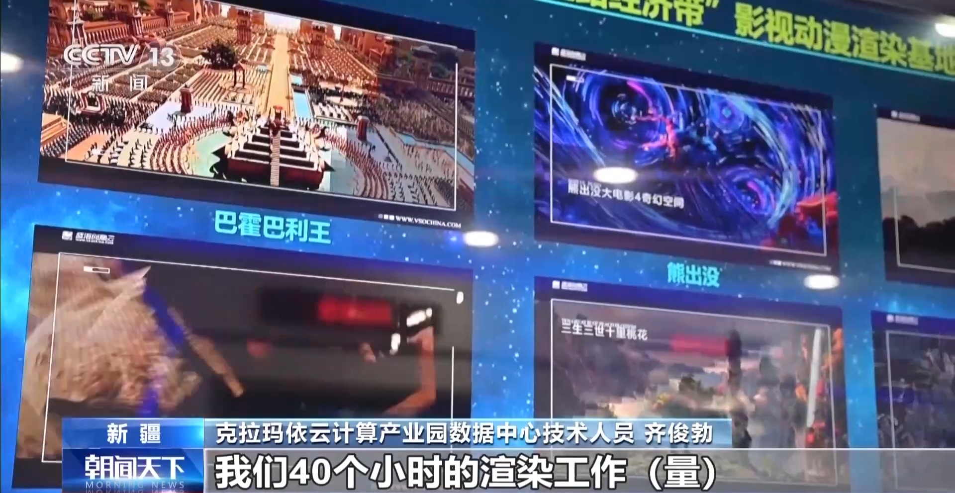 克拉玛依云计算产业园数据中心技术人员 齐俊勃:动画片在这里渲染,可以使用更多的基础设施,我们40个小时的渲染的工作量,相当于东部地区近一年的工作量。