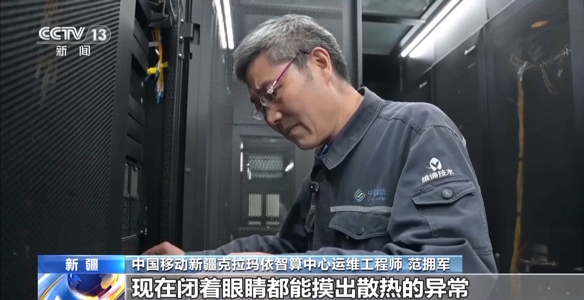 中国移动新疆克拉玛依智算中心运维工程师 范拥军:刚开始的时候,我连服务器机柜都不敢碰,现在闭着眼睛都能摸出散热的异常。