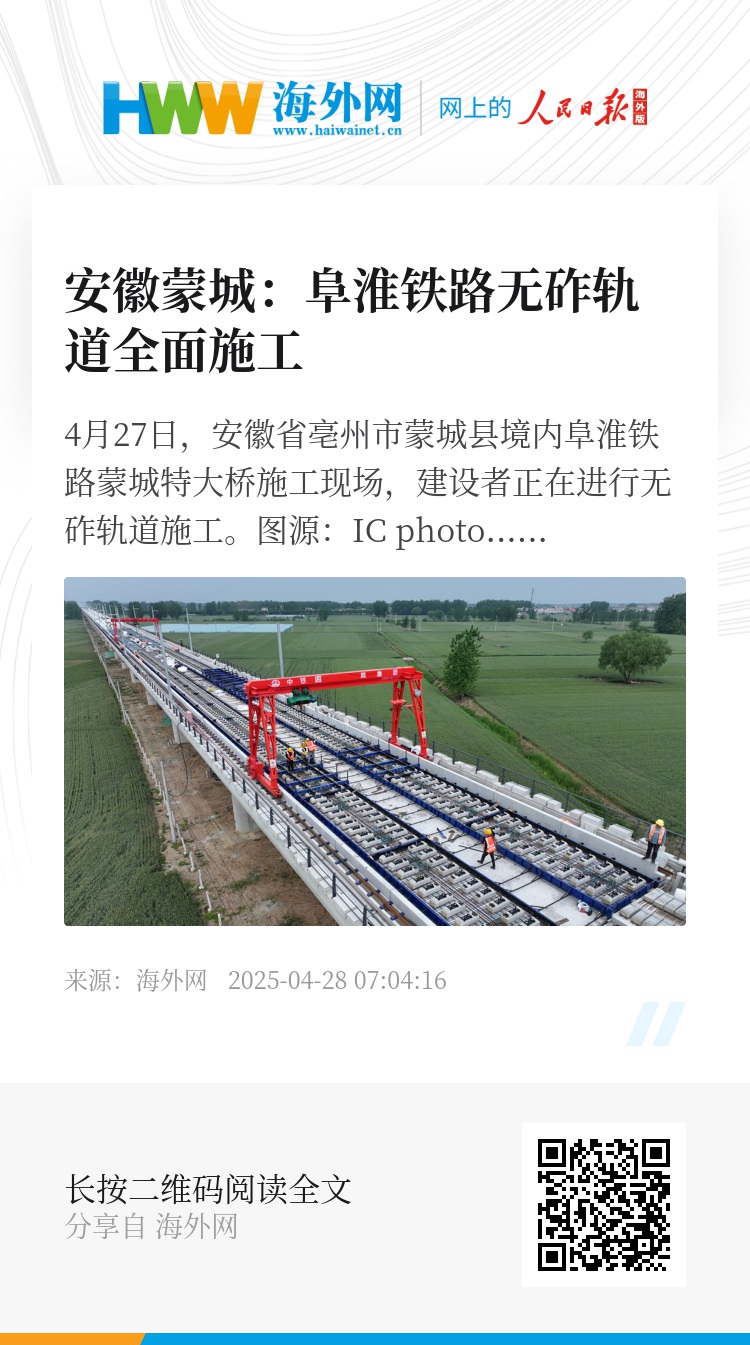 32858331,.安徽蒙城:阜淮铁路无砟轨道全面施工,.2025-04-28 07:03:16,.204441,.张荣耀、张振