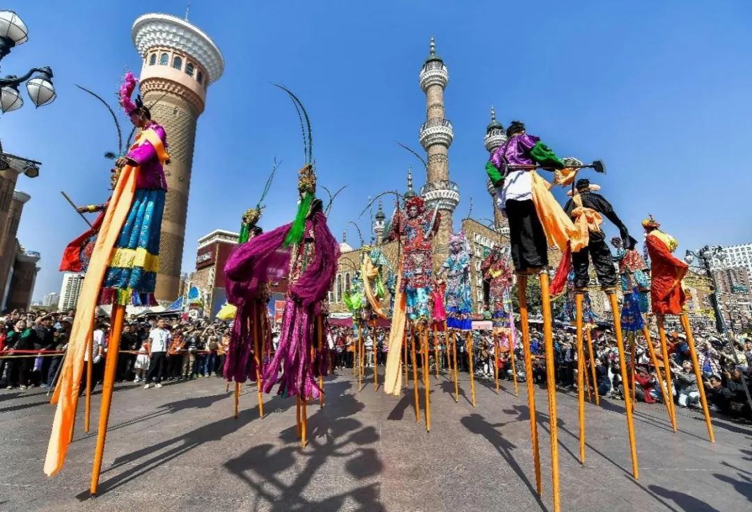 英歌舞、西宁高跷、西安鼓乐等特色表演也先后“走进”大巴扎景区,令不少本地市民直呼耳目一新。
