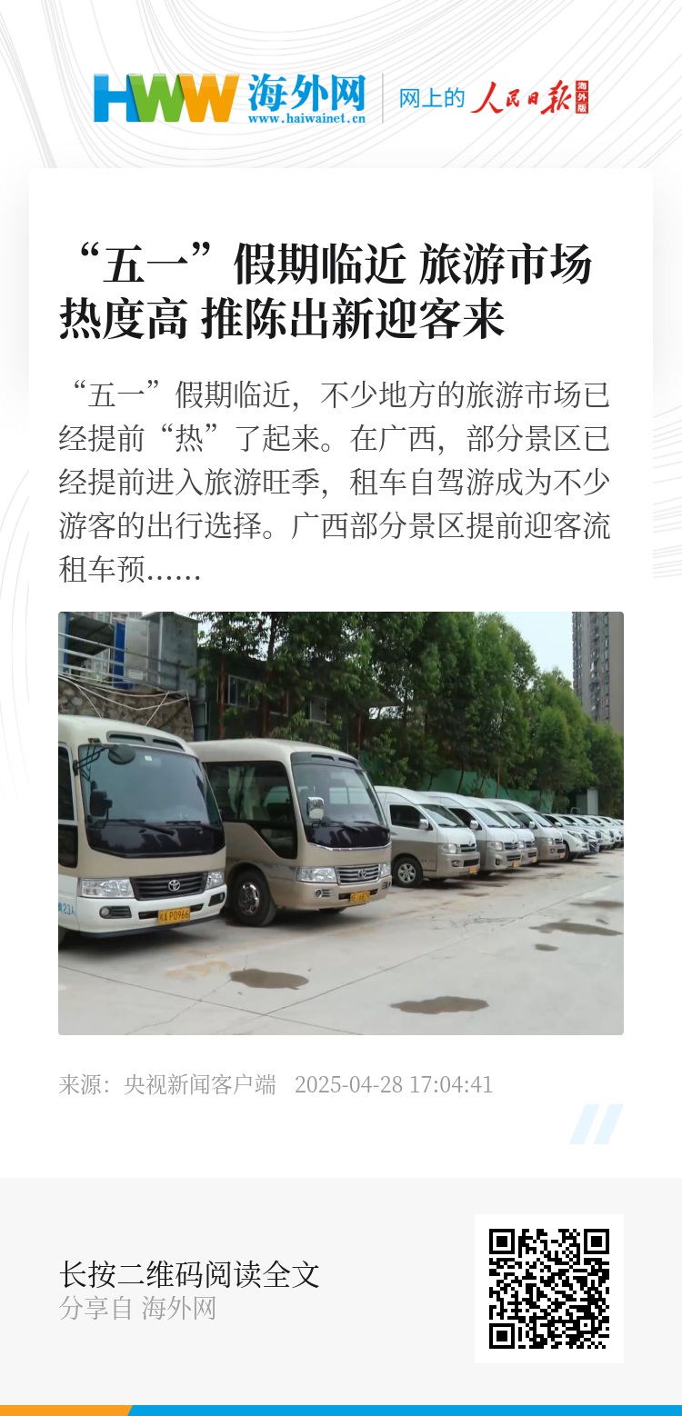 “五一”假期临近,不少地方的旅游市场已经提前“热”了起来。在广西,部分景区已经提前进入旅游旺季,租车自驾游成为不少游客的出行选择。