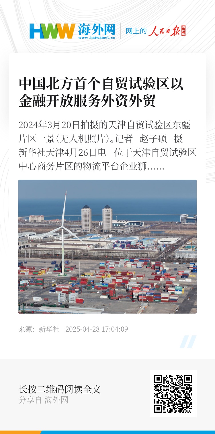 “天津自贸试验区正依托政策叠加优势,涌现出一批典型的跨境金融和离岸金融产品及服务案例,构建起更加开放、更具竞争力的跨境投融资生态,为地方经济的持续发展注入源源不断的动力。”天津市商务局副局长王亚刚说。(新华社记者李鲲、宋瑞、杨文)