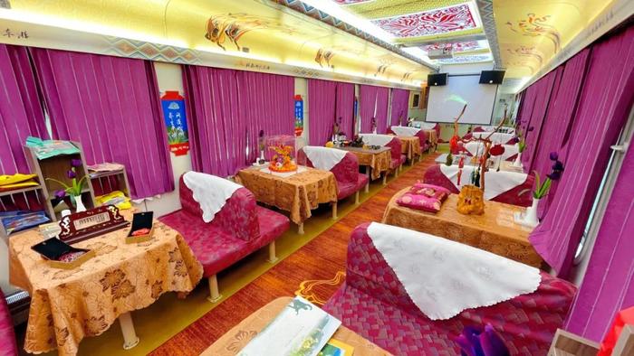 “崆峒号”旅游列车由中国铁路兰州局集团有限公司运营,全列软卧。车厢内随处可见精心设计的装饰,颇具地域特色。这趟旅游列车将在4月30日从兰州出发,途经白银、中卫,最后抵达平凉,全程4天3夜,带领旅客登临崆峒山,品平凉美食,沉浸式体验别样的春日之旅。