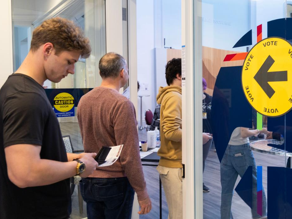 4月28日,选民在加拿大多伦多一处投票站投票。新华社发(邹峥摄)
