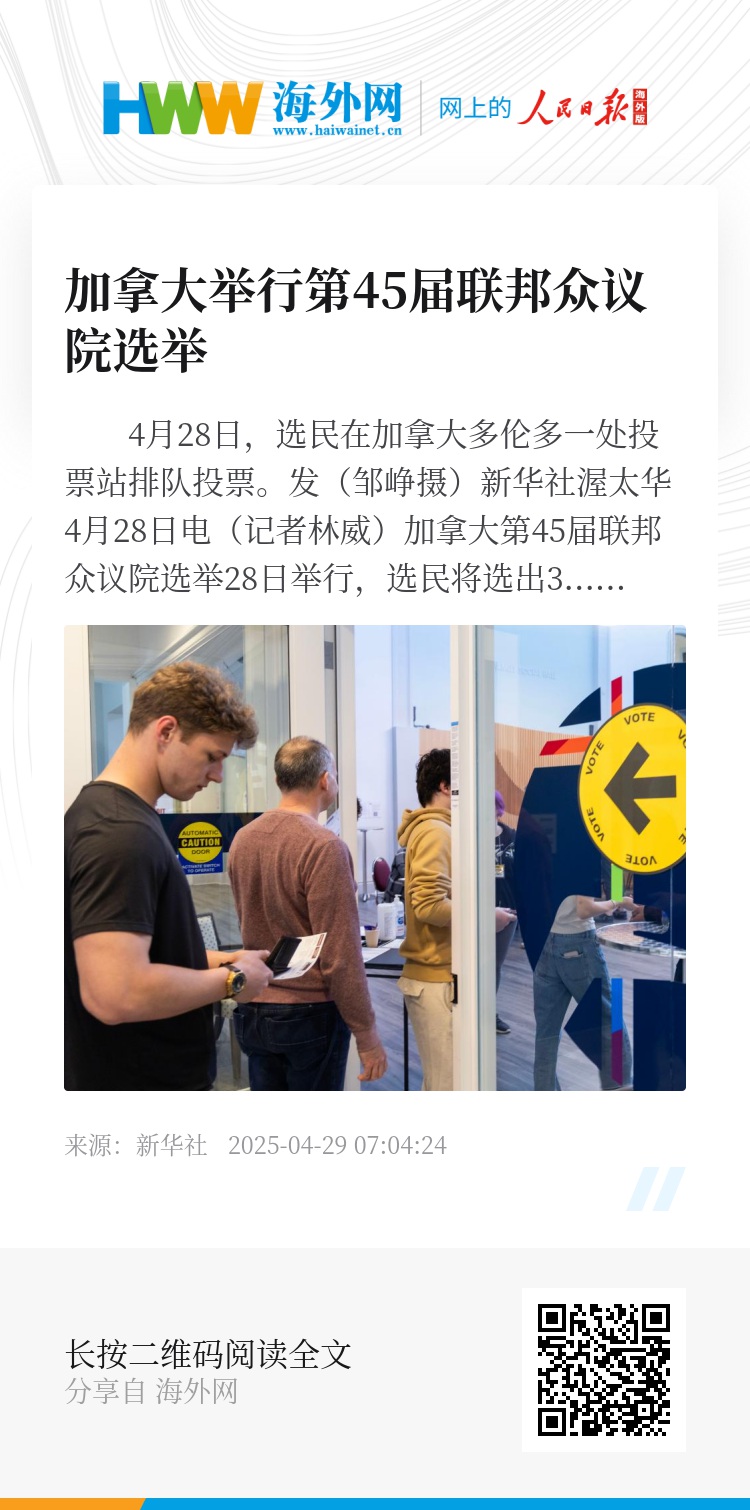 据加拿大选举委员会统计,此次选举注册选民数超过2850万,其中约730万选民已提前投票。预计投票结果将于29日揭晓。