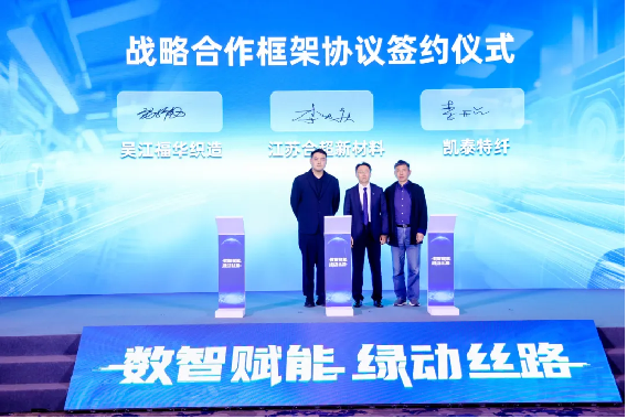 会上,产业链协同创新迎来多领域多模式合作。北京中丽与桐昆集团、聚杰微纤分别签署战略合作协议,协同突破重大关键核心技术,打造多领域合作新模式,共同探索高性能纤维领域技术以及成套装备研发合作;凯泰特纤与吴江福华织造、江苏合超新材料三方就功能性纤维应用达成合作,共同开发降温纤维及其系列纺织品,形成“技术攻关—成果转化—市场应用”的闭环生态。