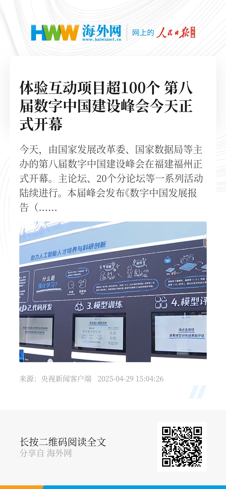峰会筹备组相关负责人、福州市数据管理局局长 薛博:人工智能机器人、多模态大模型和可信数据空间等一批新技术、新服务、新产品在本次峰会上呈现,首展率达到65%以上。这次,现场体验区从28日起向公众开放,将持续到5月4日,便于公众现场体验数字中国建设的成果。