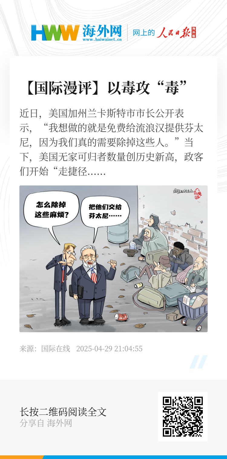 近日,美国加州兰卡斯特市市长公开表示,“我想做的就是免费给流浪汉提供芬太尼,因为我们真的需要除掉这些人。”当下,美国无家可归者数量创历史新高,政客们开始“走捷径”:与其花钱安置,不如让毒品“自然淘汰”弱势群体。