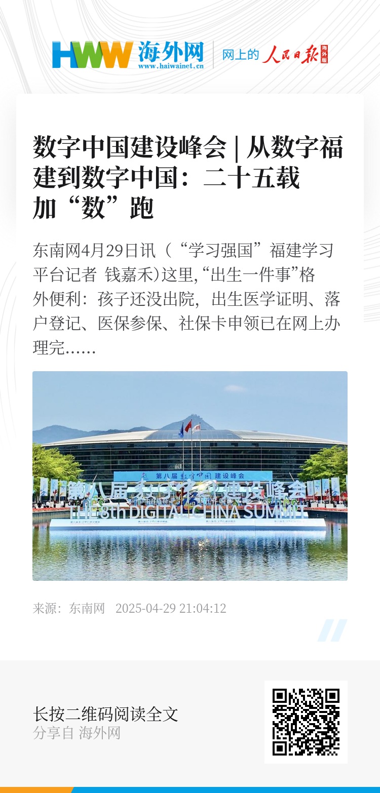 2025年,是“数字福建”建设25周年,也是习近平总书记正式提出推进“数字中国”建设10周年。4月29日,第八届数字中国建设峰会在福建福州启幕,四海宾朋纷至沓来,展开智慧“碰撞”,共话数字新时代。
