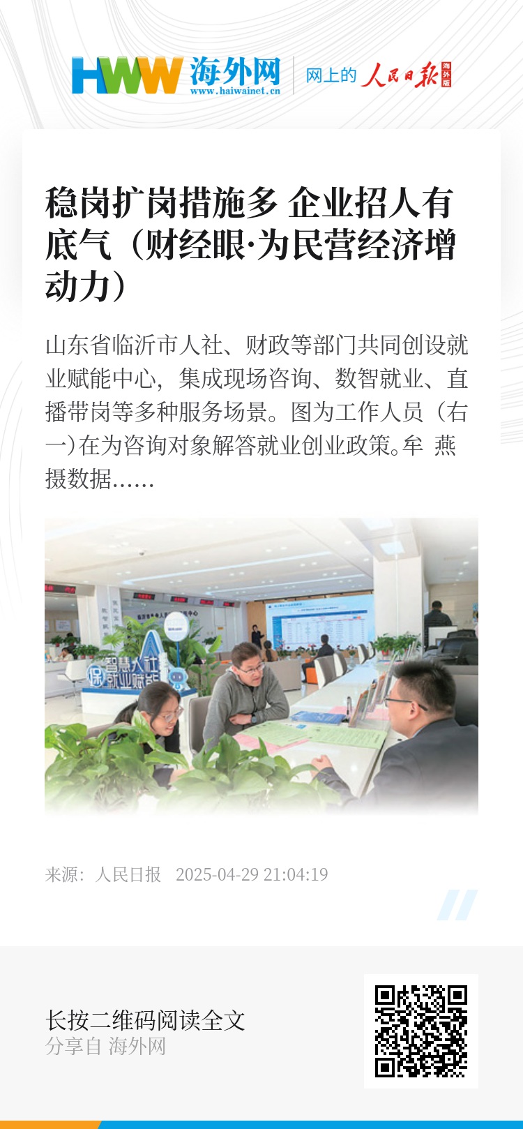 为支持民营企业稳岗扩岗,近年来,临沂市财政部门积极筹措资金,精准有效施策,扩大就业容量,不断提升就业质量。聚焦扶持青年群体、兜底困难群体、保障灵活就业群体,临沂市打好技能培训、社保补贴、岗位补贴、见习补贴、创业担保贷款等政策“组合拳”,2024年累计支持22.7万人次创业就业,实现城镇新增就业10.6万人。今年一季度累计支持5.1万人次就业创业。