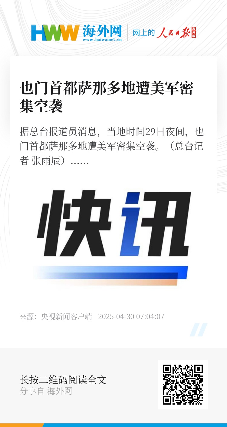 据总台报道员消息,当地时间29日夜间,也门首都萨那多地遭美军密集空袭。(总台记者 张雨辰)