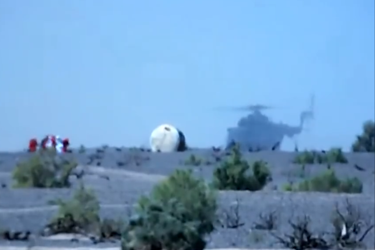 2021年9月17日,神舟十二号飞船返回舱在东风着陆场着陆,这是东风着陆场首次作为主着陆场执行载人飞船返回任务,返回舱着陆后,搜救分队在复杂地形中完成了返回舱快速定位和航天员救援。