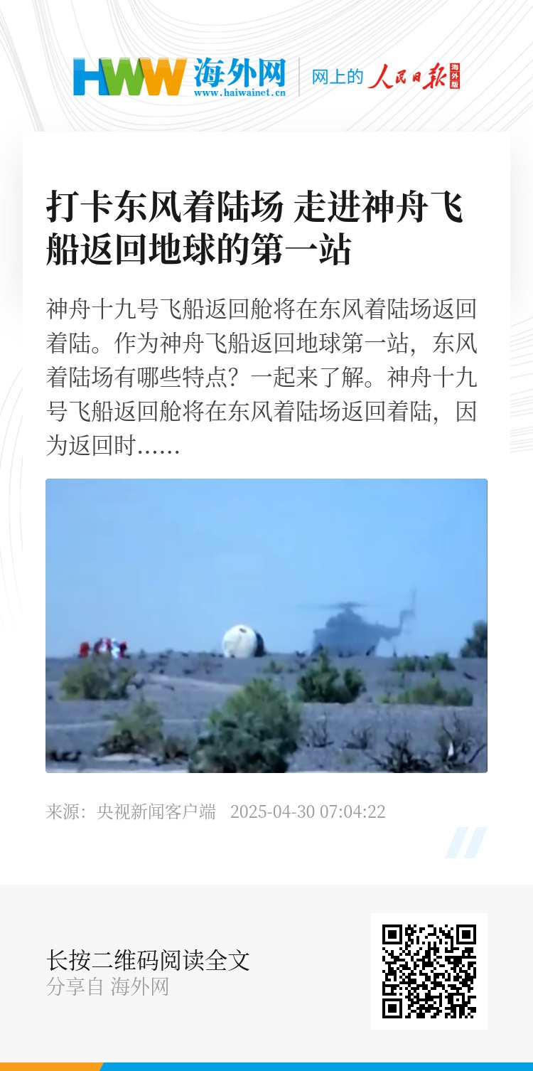 神舟十九号飞船返回舱将在东风着陆场返回着陆。作为神舟飞船返回地球第一站,东风着陆场有哪些特点?一起来了解。