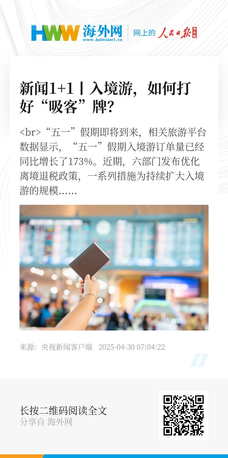 “五一”假期即将到来,相关旅游平台数据显示,“五一”假期入境游订单量已经同比增长了173%。近期,六部门发布优化离境退税政策,一系列措施为持续扩大入境游的规模,能发挥怎样的作用?入境游,不管在文旅,还是在消费市场,又如何成为一个新的增长点?《新闻1+1》连线中国旅游研究院副院长马仪亮,一起带来解读分析。