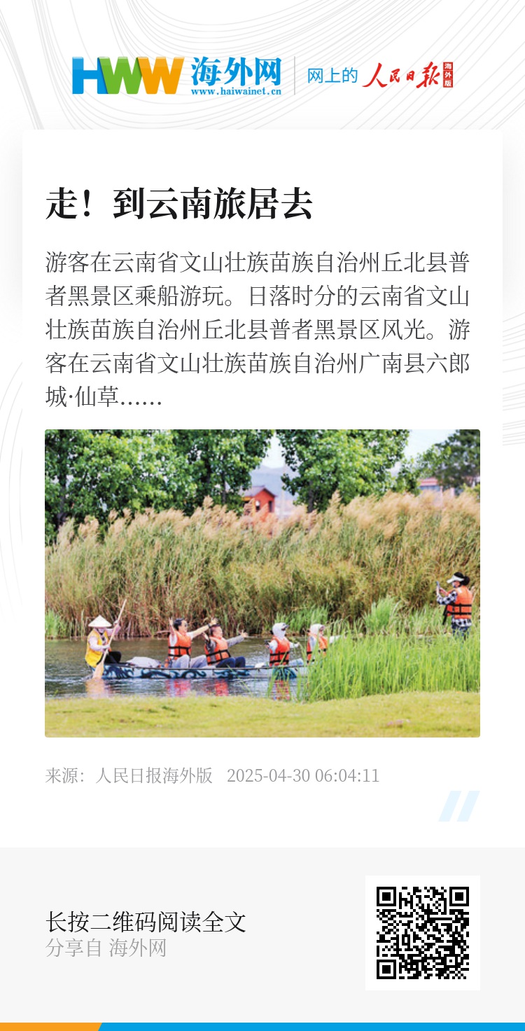 最新印发的云南省《关于进一步培育新增长点 打造旅游消费升级版的若干措施》提出,聚焦“旅居云南”建设,将重点培育乡村、度假、医养、文艺、体育等旅居业态,开展旅居高质量发展试点示范,推出一批“宝藏小城”和“烟火乡村”,模块化植入流动图书馆、非遗工坊等业态打造新型文化空间,进一步丰富高品质旅游产品供给,引领和促进文旅消费。