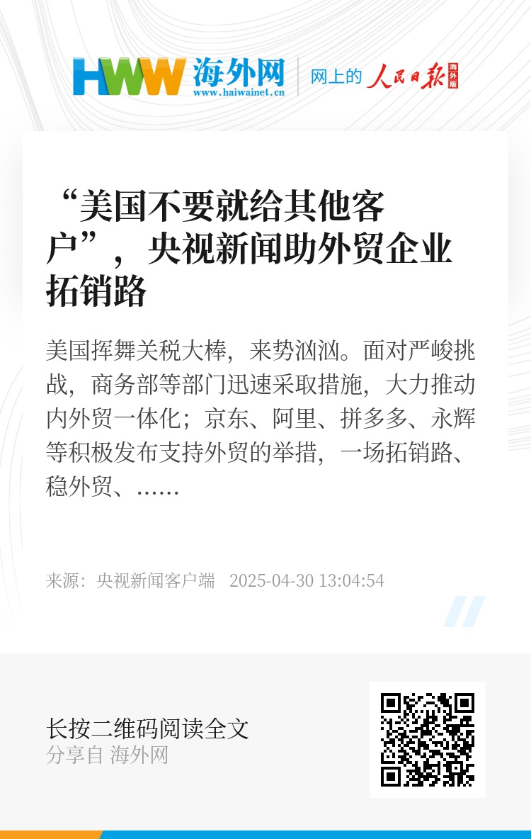 在这场为外贸企业拓销路、稳市场的集体行动中,央视新闻与商超平台、外贸企业实现了一场“双向奔赴”,充分彰显了主流媒体的使命担当。这场联动不仅以真实数据印证了助力实效,更让全社会看到了中国市场的无限潜力与中国制造的强大韧性。