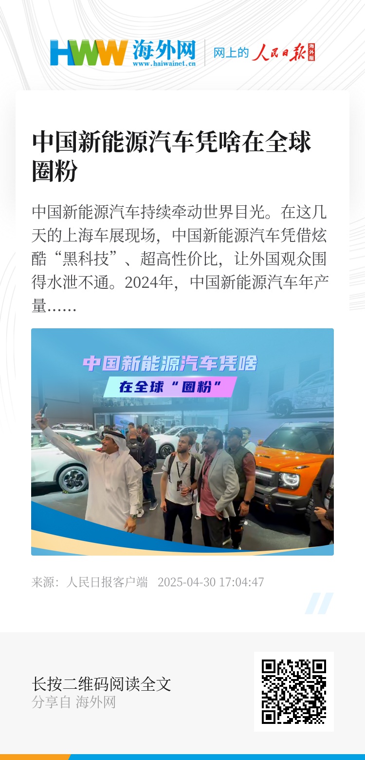 “跳出中国看中国”,既看到当下的蓬勃生机,更看到未来的发展趋势。在全球绿色转型的大潮中,中国新能源汽车正向着更加美好的未来加速奔跑,“小院高墙”挡不住中国新能源汽车“跑得更快”!