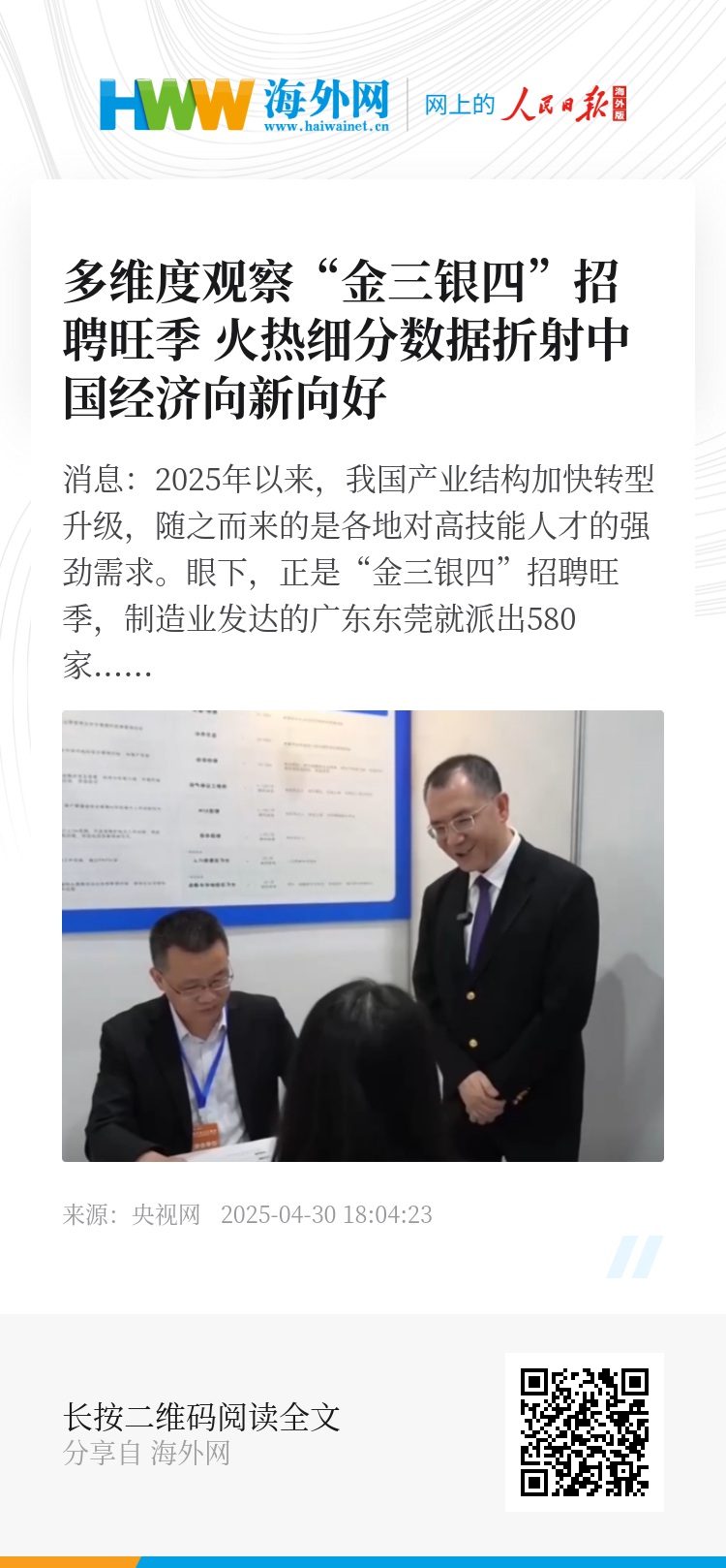 央视网消息:2025年以来,我国产业结构加快转型升级,随之而来的是各地对高技能人才的强劲需求。眼下,正是“金三银四”招聘旺季,制造业发达的广东东莞就派出580家企业前往浙江跨省招人,具体情况如何?