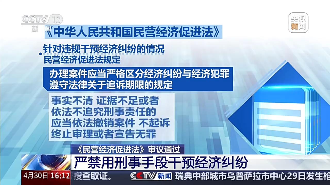 针对实践中存在的违规干预经济纠纷、异地执法等情况,民营经济促进法也作出了明确规定,严禁用刑事手段干预经济纠纷,加强异地执法协作。