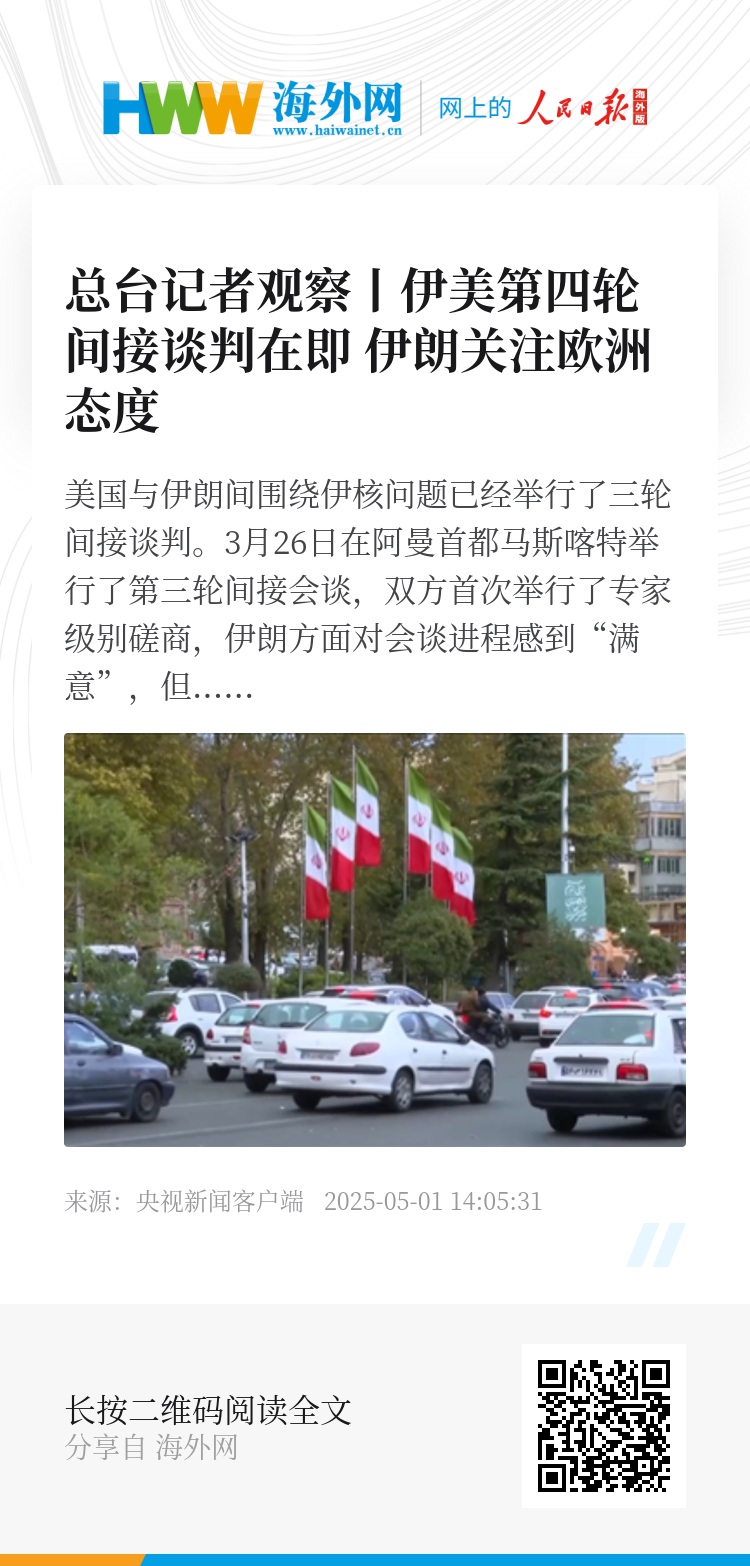 总台记者 李健南:当地时间4月30日,伊朗外长阿拉格齐宣布,第四轮伊朗美国核问题间接谈判,将在意大利首都罗马举行。与此同时,在第四轮谈判的前一天,也就是当地时间5月2日,伊朗将与欧洲英法德三国举行核问题谈判。针对已经结束的谈判以及下一轮谈判将如何展开,伊朗各界也在密切关注。