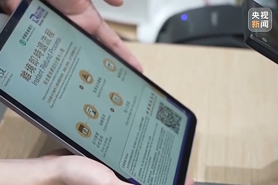 在本届广交会展馆的“税收服务驿站”,税务AI融媒主播“穗小颖”现场讲解境外旅客购物、离境退税“即买即退”的服务措施。服务台上,还放置有多语种税费政策服务手册,吸引了不少参展客商前来咨询。银行机构也在展馆内设置了金融服务专区,现场演示离境退税流程。