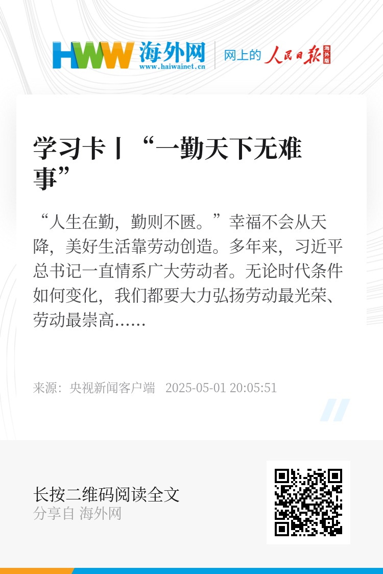 “人生在勤,勤则不匮。”幸福不会从天降,美好生活靠劳动创造。
