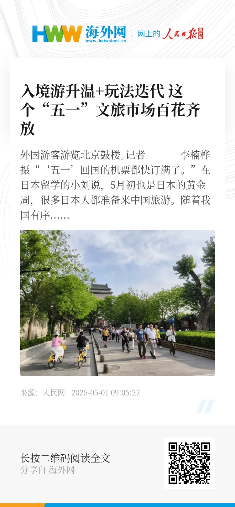 随着我国有序扩大自主开放和单边开放,今年以来,我国入境游市场持续升温,今年一季度入境外国游客921.5万人次,同比增长40.2%。而近期多部门全面推广境外旅客购物离境退税“即买即退”等举措,更是为入境游添了把“火”,“五一”假期入境游热度不断攀升。