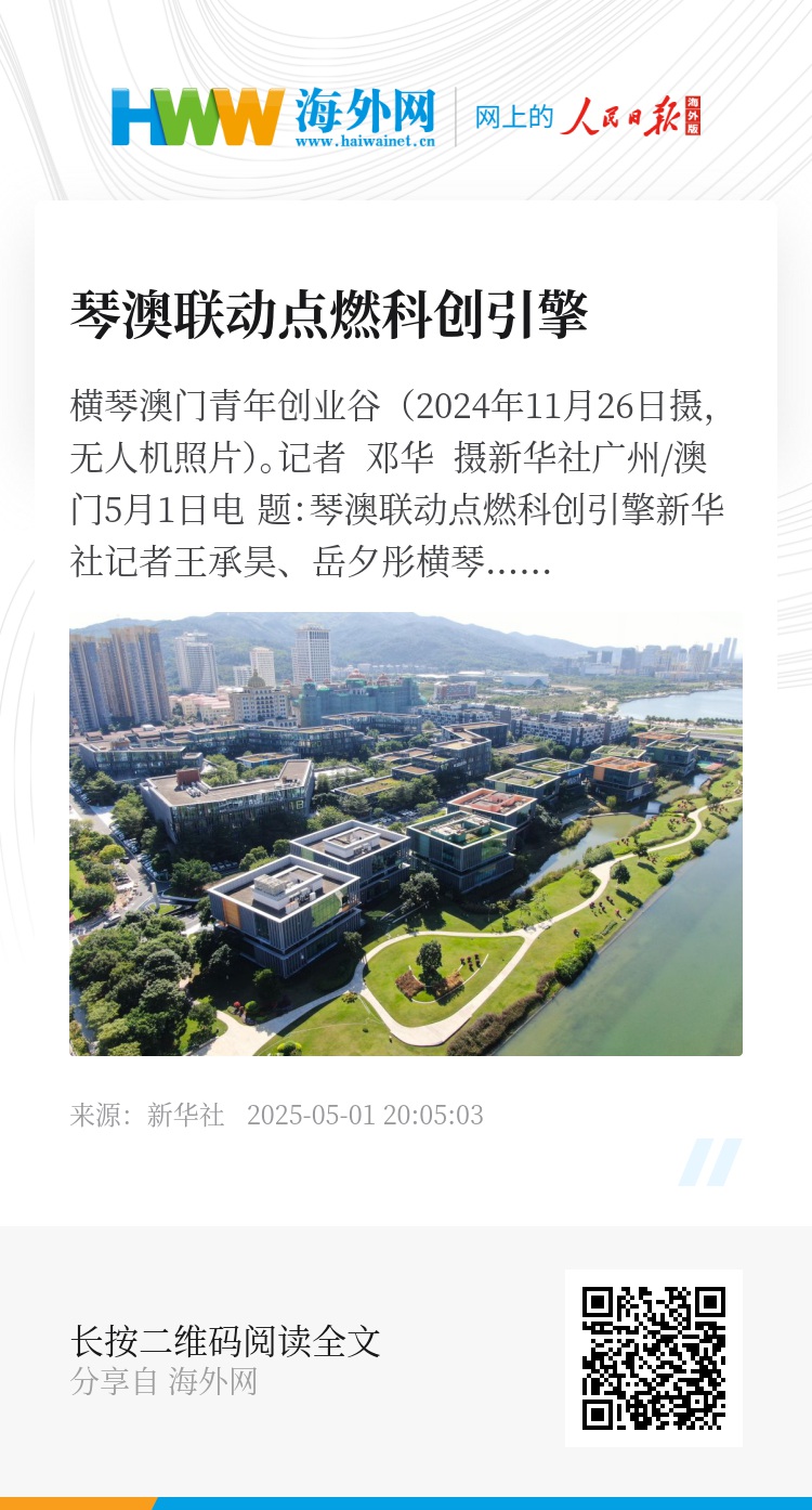 新华社广州/澳门5月1日电 题:琴澳联动点燃科创引擎