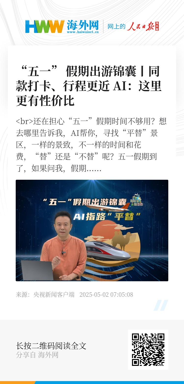 还在担心“五一”假期时间不够用?想去哪里告诉我,AI帮你,寻找“平替”景区,一样的景致,不一样的时间和花费,“替”还是“不替”呢?