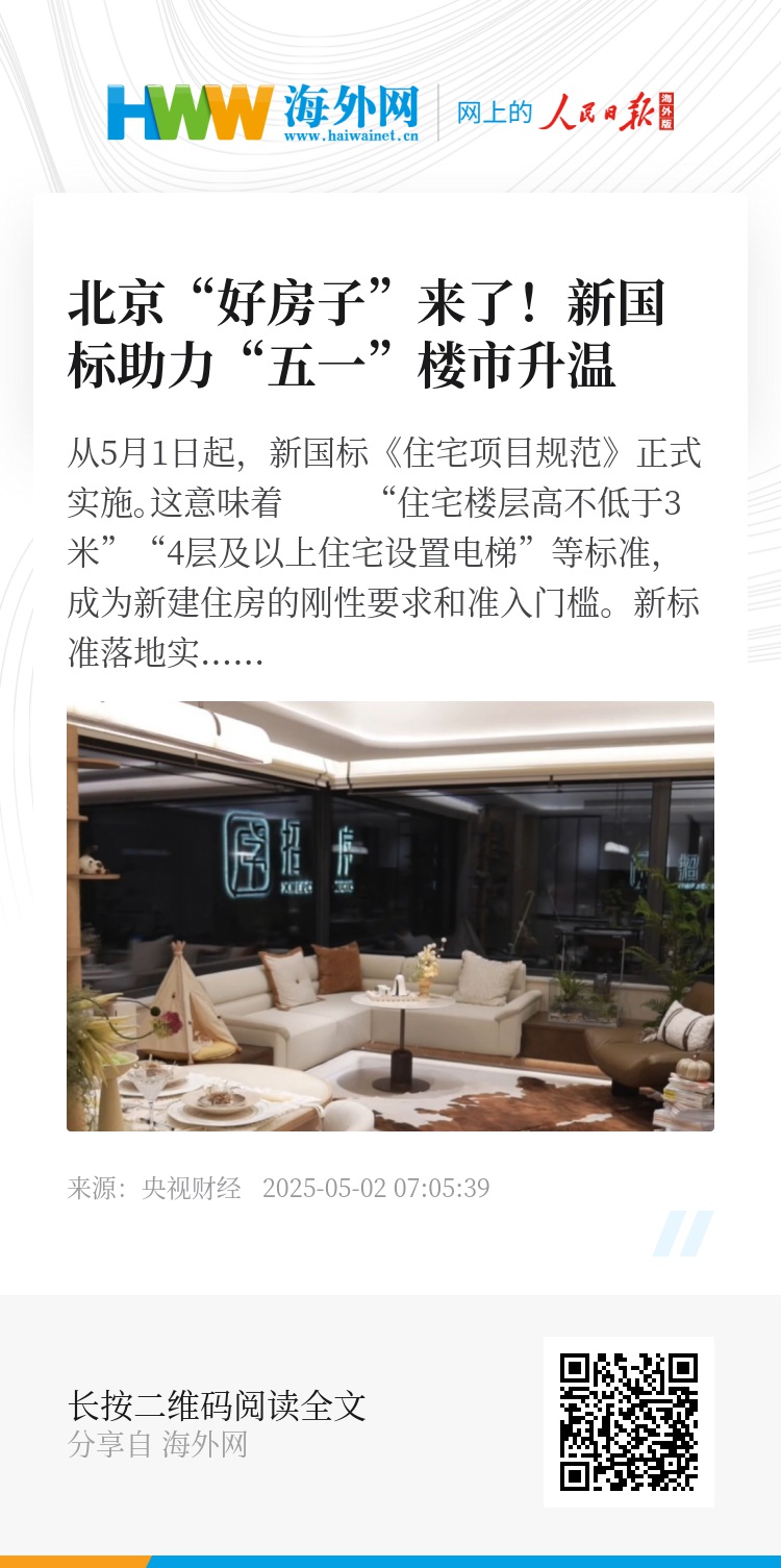 从5月1日起,新国标《住宅项目规范》正式实施。这意味着 “住宅楼层高不低于3米”“4层及以上住宅设置电梯”等标准,成为新建住房的刚性要求和准入门槛。新标准落地实施,各地“五一”楼市有什么变化?新规下“好房子”有什么亮点?