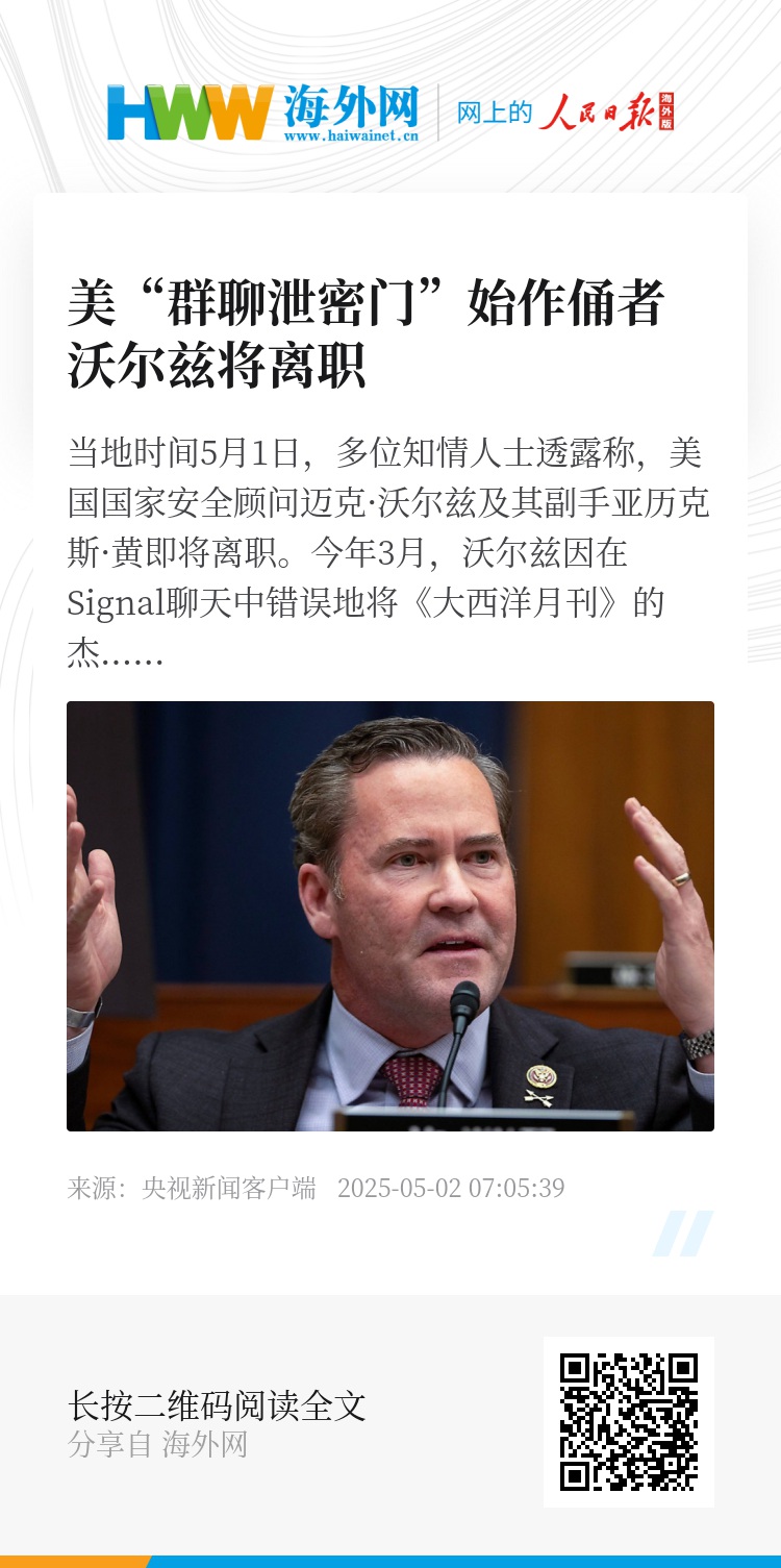 今年3月,沃尔兹因在Signal聊天中错误地将《大西洋月刊》的杰弗里·戈德伯格加入群聊而受到密切关注。戈德伯格披露了沃尔兹与国家安全高级官员就美国对也门胡塞武装目标进行军事打击计划的讨论。在沃尔兹闭门承认报道的真实性后,白宫官员曾就他是否应该辞职展开辩论,但沃尔兹从未提出辞职,特朗普当时也没有要求他辞职。特朗普曾公开表示支持沃尔兹,称他为“一个好人”,且“吸取了教训”。(央视记者 许弢)
