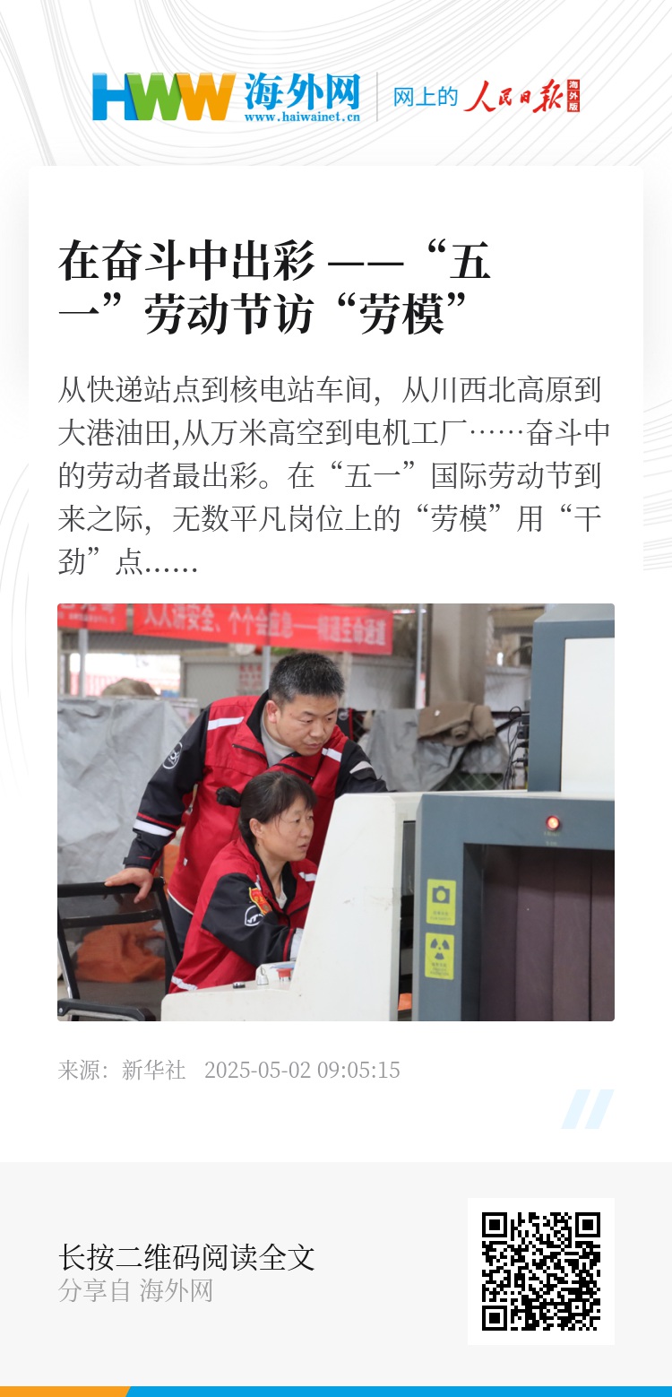 从快递站点到核电站车间,从川西北高原到大港油田,从万米高空到电机工厂……奋斗中的劳动者最出彩。