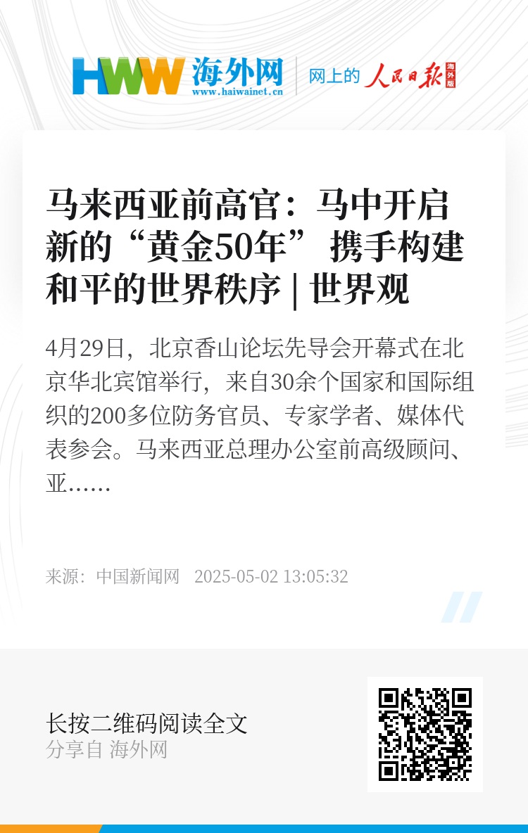 2025年1月1日,马来西亚正式成为金砖伙伴国之一。彭润年说,2025年,马来西亚作为东盟轮值主席国,愿意维护金砖与东盟之间的友好关系,在相互尊重与合作的基础上,构建和平的世界秩序。(巩微微)