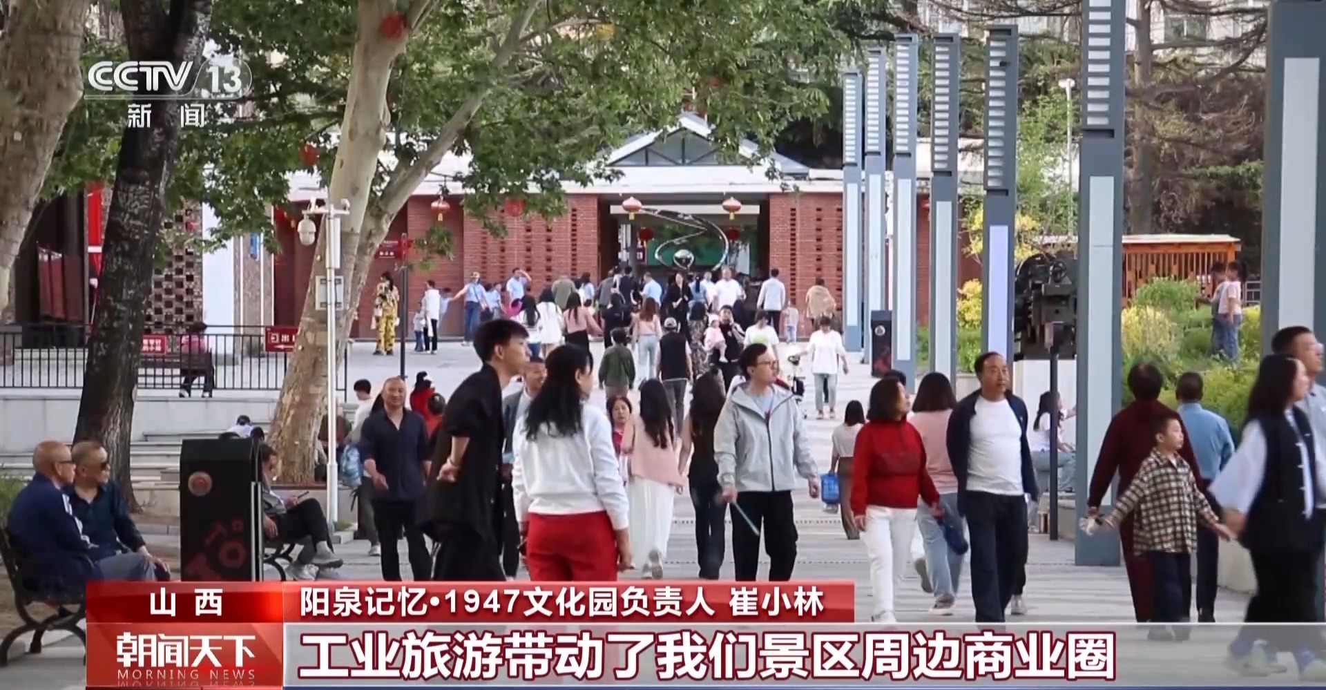 在山西阳泉,这处由老水泵厂改造的文化园火爆出圈。这个“五一”假期,推出了沉浸式情景剧表演,带游客穿越回70多年前的工厂大院生活。文化园旁边还建起商业街区,涵盖多种消费空间,不仅直接拉动旅游,还带动了餐饮住宿等业态发展。