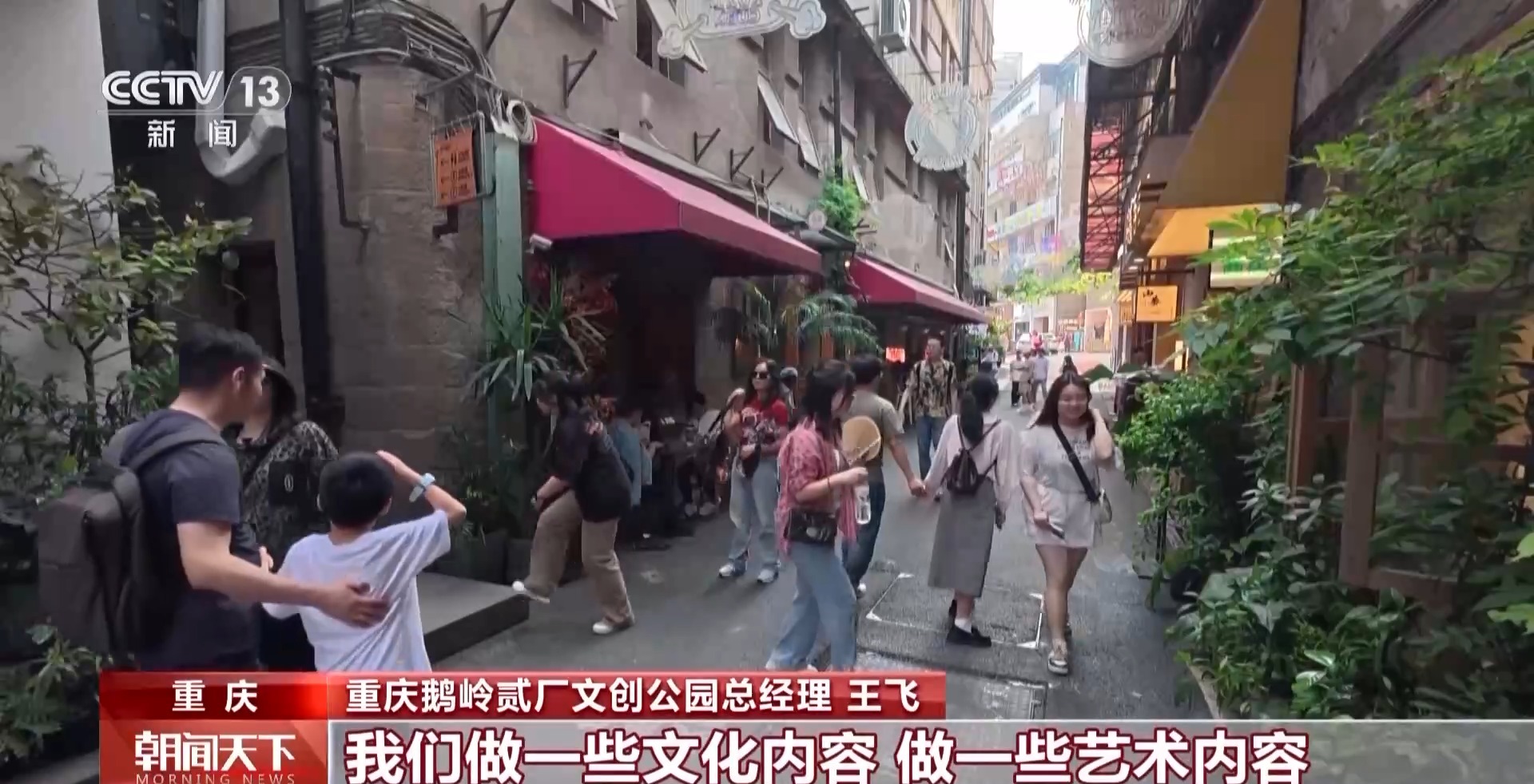 重庆鹅岭贰厂文创公园总经理 王飞:老厂房的风格我们不改变,我们做一些文化内容,做一些艺术内容,做一些创意创新的内容。“五一”节期间,一天的人流量至少都是六万、七万。